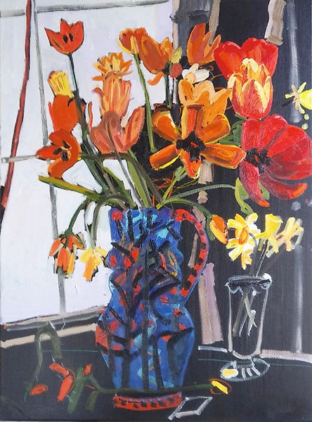 "Tulips", mixed media on paper